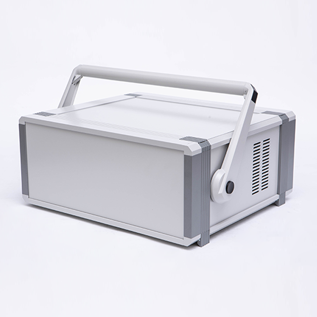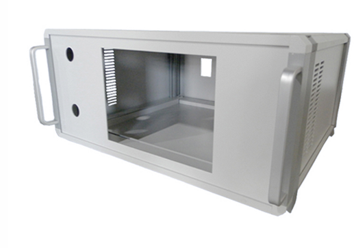 A型機(jī)箱由上蓋板,下蓋板,前面板,后面板,側(cè)板,底腳,把手,前后梁等配件組裝而成,為臺式機(jī)箱。標(biāo)配型機(jī)箱表面經(jīng)噴塑處理,噴塑的塑粉顏色可以按照客戶要求選定,白、灰色為行業(yè)首選的經(jīng)典顏色。